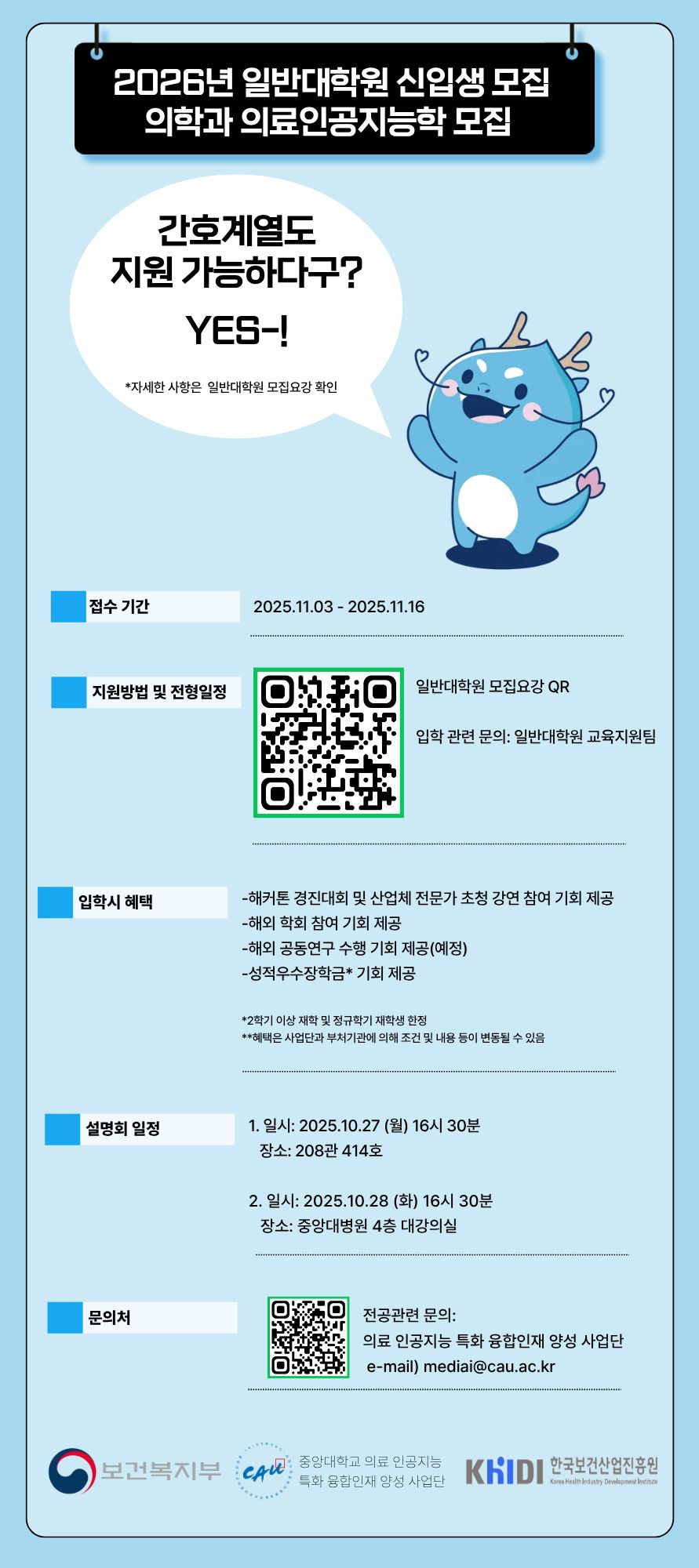 [일반] [의료인공지능특화융합인재양성사업단] 2026학년도 전기 대학원생 모집 안내