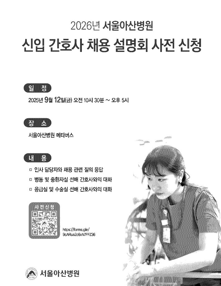 2026년 서울 아산 병원 신입 간호사 공채 안내