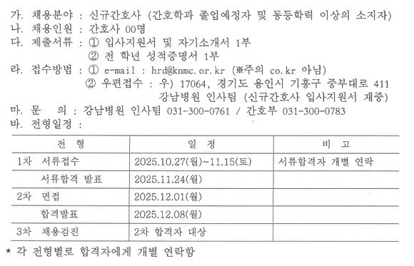 강남병원(용인) 2026년 신규간호사 모집 안내